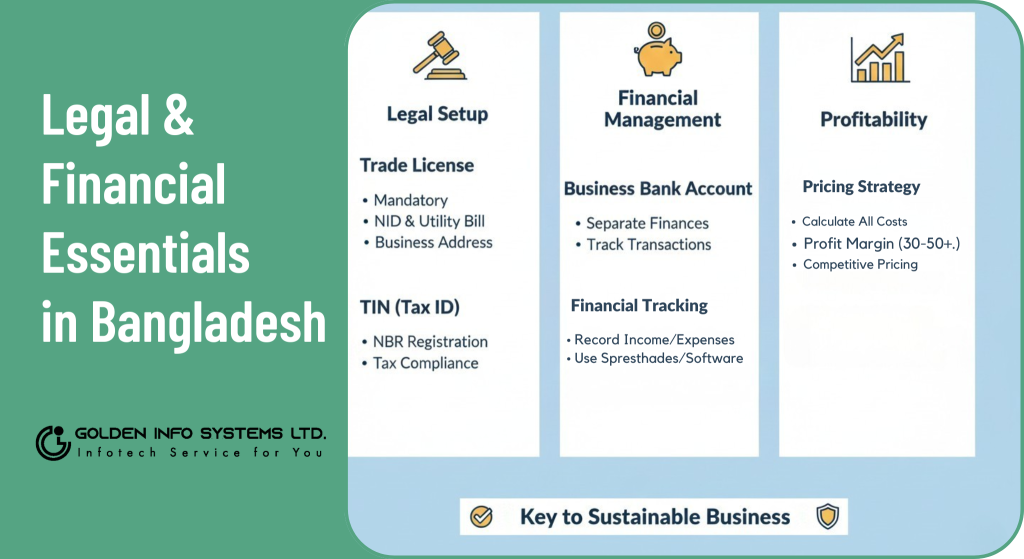 - Recommendation: Start with low capital and test the market. Once you are generating ৳20,000+ in monthly sales, apply for your Trade License and TIN (Tax Identification Number).